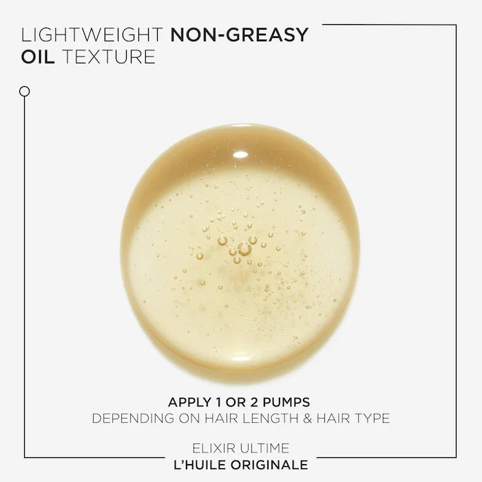 - 2.53 oz/ 75 mL Full Size Elixir Ultime Refillable Hydrating Hair Oil