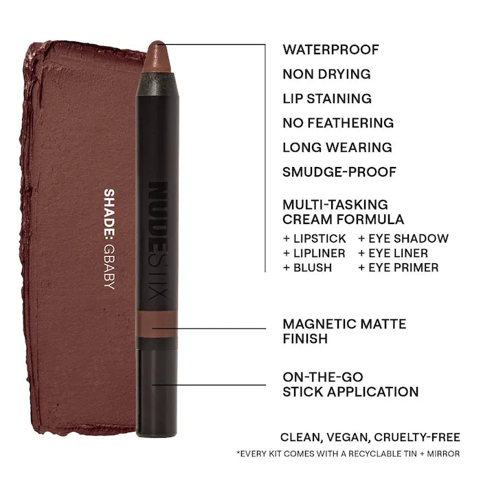 - 2 x 0.10 oz/ 2.8 g Magnetic Matte Lip Color in Limited Edition Greystone (greige with matte finish), GBaby (deep brown plum)