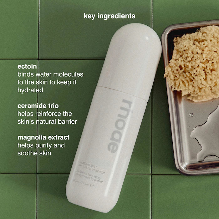 What Else You Need to Know: Glazing Mist lets you take the benefits of your rhode routine on the go. It instantly leaves skin looking glazed, supple, and hydrated, providing a glowy, radiant finish that lasts for hours. Our formula also has added purifying benefits, helping skin feel more balanced
