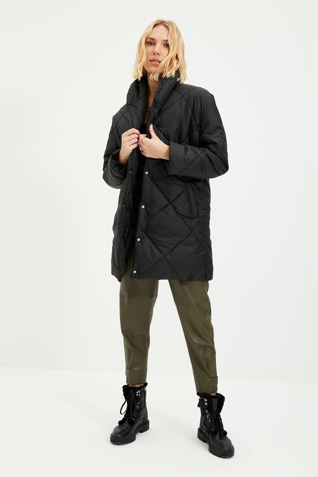 Black Oversize Quilted Coat