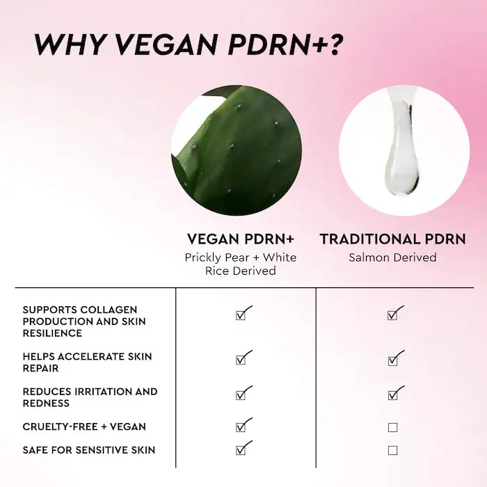- Two Types of Vegan PDRNs (White Rice and Prickly Pear): Support natural collagen for smoother, more resilient skin.
