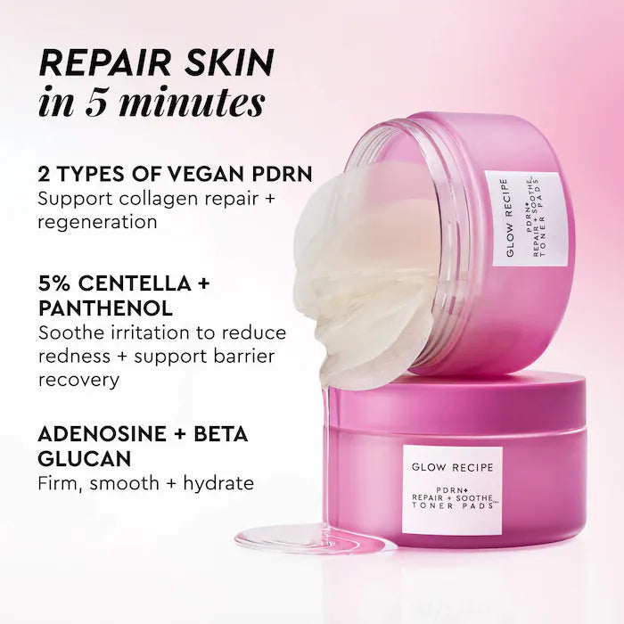 What Else You Need to Know: These ultra-thin toner pads pair vegan PDRN+ with five calming actives (adenosine, glycerin, beta glucan, Centella, and panthenol) to visibly reduce redness, support collagen regeneration, deeply hydrate, and repair the skin barrier for smoother, more resilient skin.