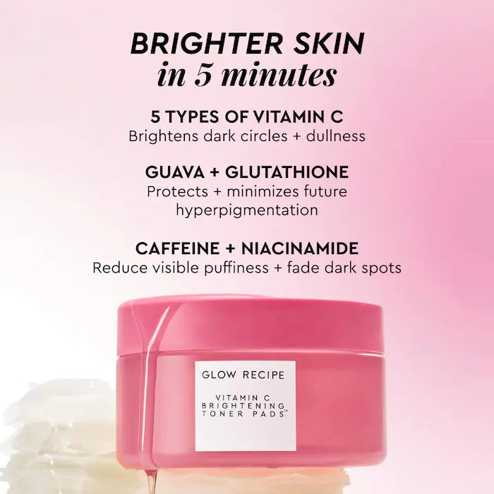 What it is: Daily Korean toner pads powered by Vitamin C, Glutathione, and Caffeine to depuff undereyes while targeting dark circles, dullness, and dark spots.